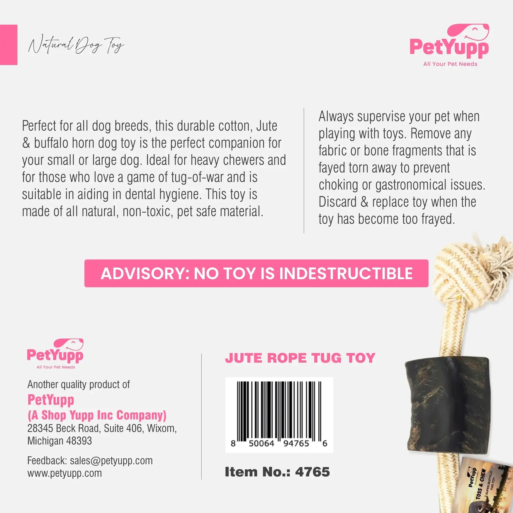 Perfect for A Game of Tug of War: This cotton and jute rope tug toy with buffalo horn is perfect for a game of tug of war or any other interactive gameplay between a pet and the pet owner. It helps to strengthen their bond.