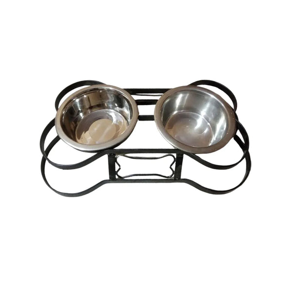 Bone Shape Iron Double Diner With Removable Stainless Steel Bowls