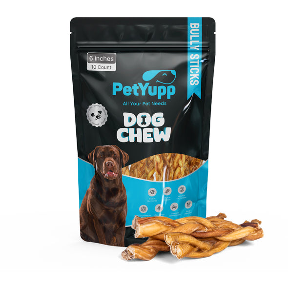 Indulge your dogs with PetYupp Braided Bully Sticks, made from 100% natural water buffalo pizzle without any additives or chemicals. This pack of 10, 6-inch sticks offers long-lasting entertainment for aggressive chewers and promotes dental health. Ethically sourced and odor-free, these protein-rich treats are perfect for indoor enjoyment.