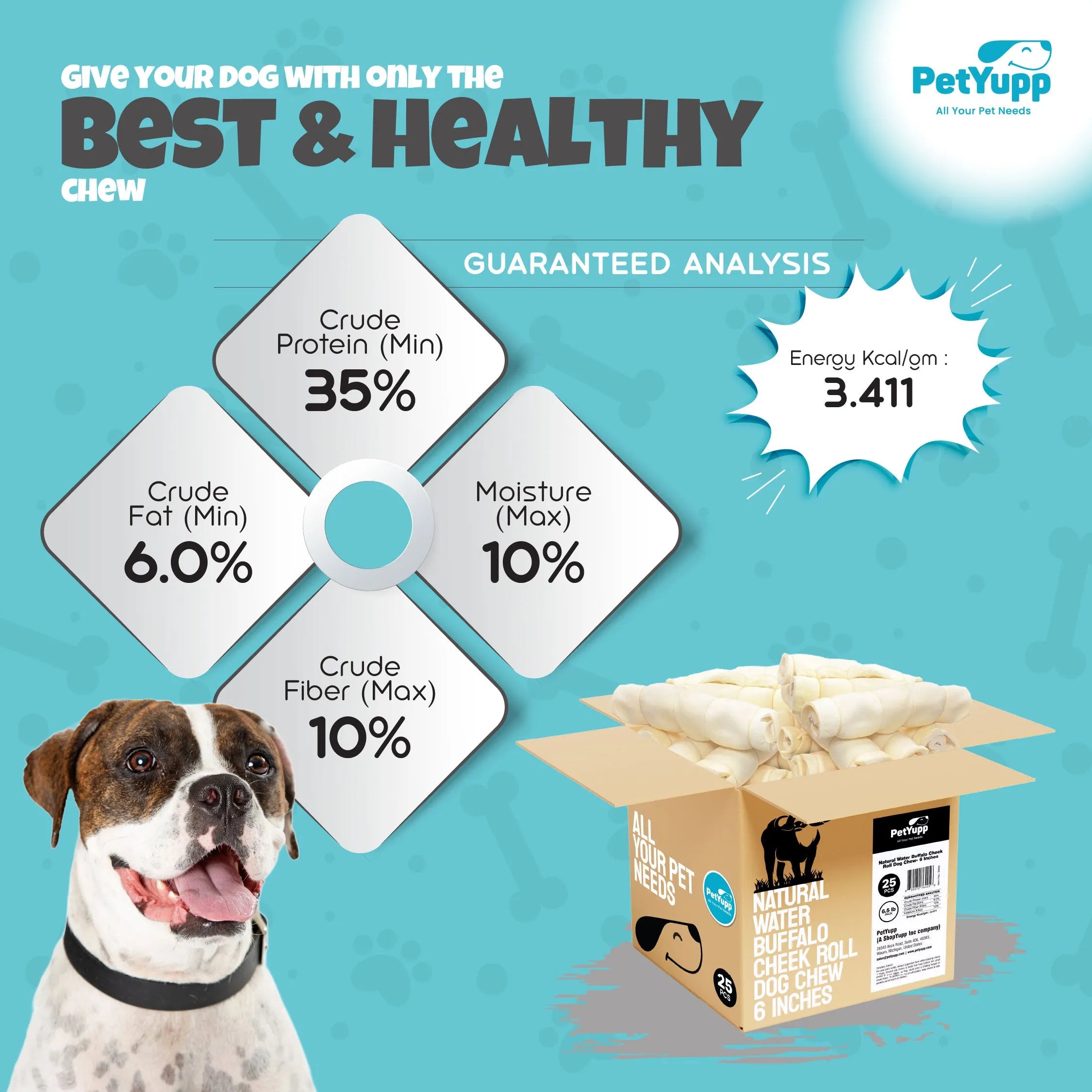 Nutrient-dense: Many nutrients like protein and amino acids are essential for the growth of your furry friend. Nutrition is important for the overall vitality and health of your dog’s body. Water buffalo cheek rolls provide protein and essential amino acids to your furry friend so that it may remain healthy and active.