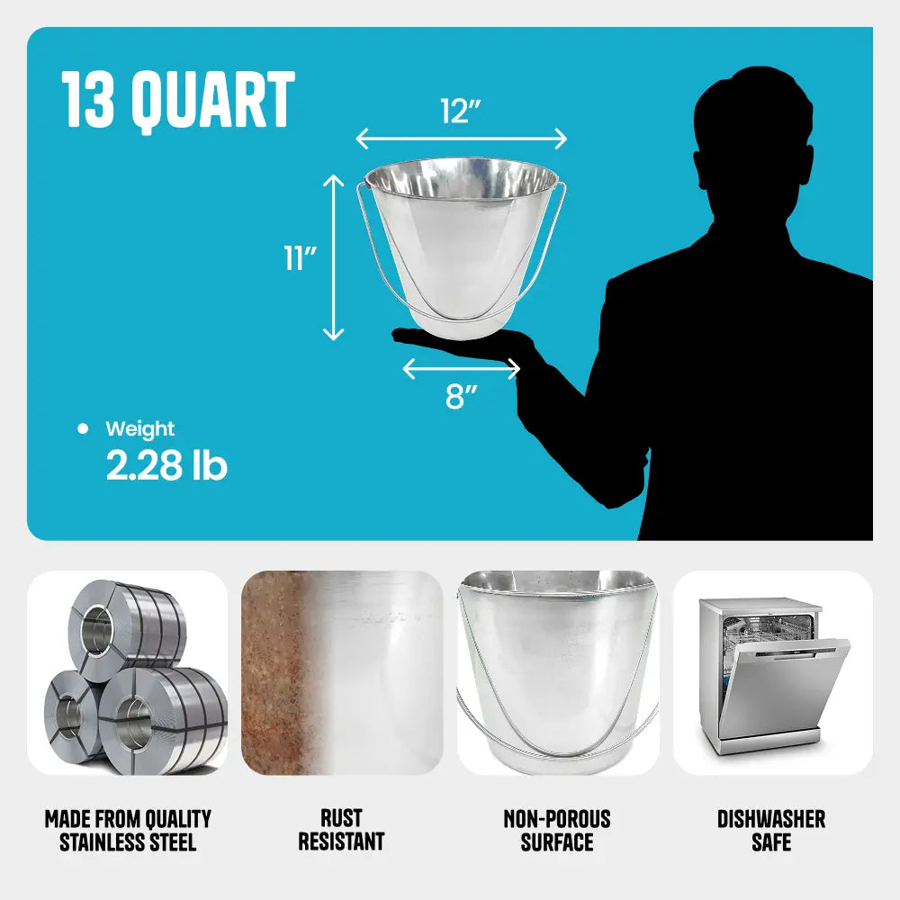 Diverse Functionality: This heavy stainless steel flat bucket is perfect for feeding and watering plants, as well as feeding your pet. It can be used for multiple household functions.