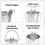 Heavy Duty Stainless Steel Flat Bucket with 2 Hooks - 4 Quart - Pack of 6