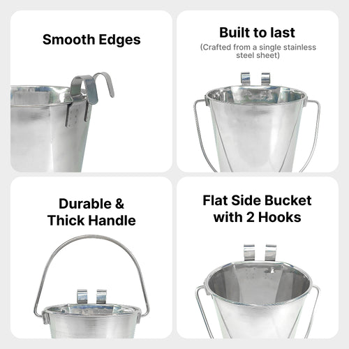 Pack of Six 4-Quart Heavy-Duty Stainless Steel Flat Buckets with 2 Hooks