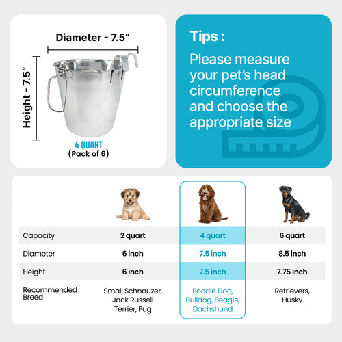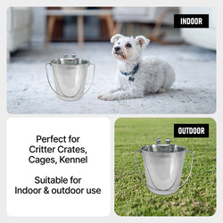 Built for strength, stability, and convenience, this pack of six 4-quart stainless steel flat-side buckets features two strong, built-in hooks for secure hanging on cages, fences, or walls. The dual-hook design provides superior stability, preventing spills or tipping — perfect for feeding, watering, and daily use in kennels, barns, or workshops.