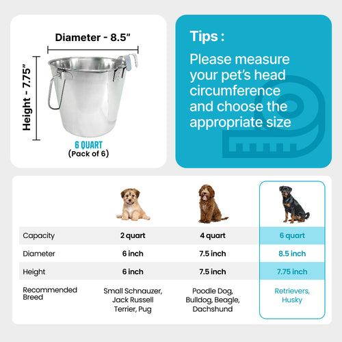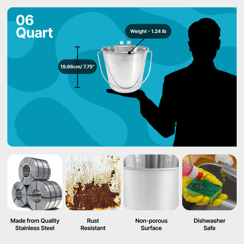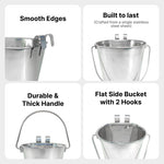 Pack of Six 6-Quart Heavy-Duty Stainless Steel Flat Buckets with 2 Hooks