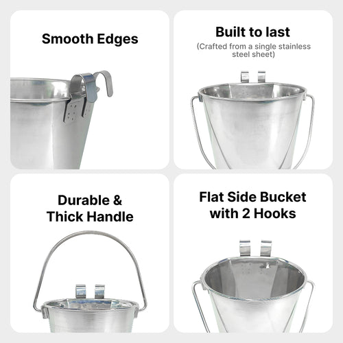 Constructed from premium heavy-duty stainless steel, these buckets are rust-resistant, dent-proof, and built to endure years of daily use. The flat-side design allows a snug, space-saving fit, while the smooth, polished surface ensures easy cleaning and long-lasting shine.
