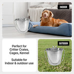 Engineered for reliability and convenience, this pack of six 6-quart stainless steel flat-side buckets features two strong, built-in hooks for secure hanging on cages, fences, or walls. The dual-hook design provides exceptional stability, preventing spills or tipping — ideal for feeding, watering, and other heavy-use applications in kennels, barns, or stables.