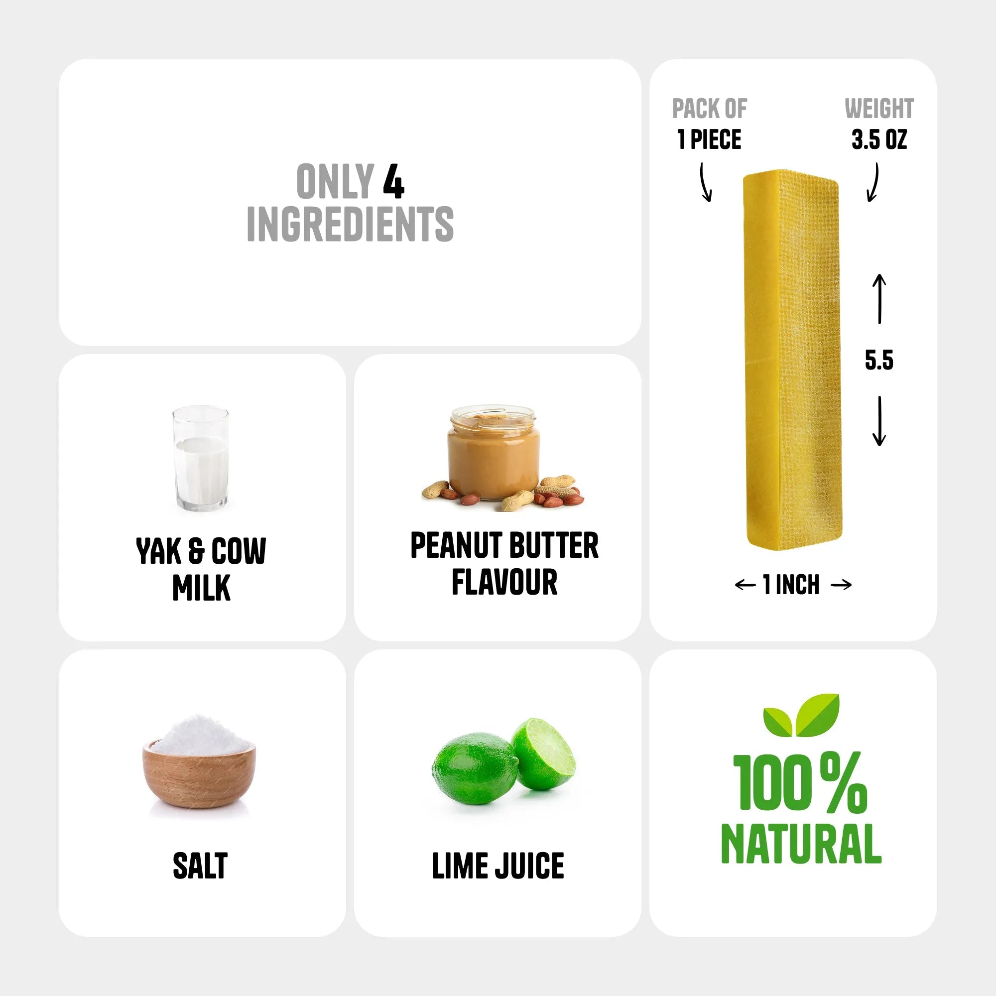- 🧀 PREMIUM QUALITY HIMALAYAN CHEESE CHEWS – Made with 100% natural ingredients, this delicious chew is crafted from authentic Himalayan yak and cow milk, enriched with a mouthwatering peanut butter flavor your dog will adore.