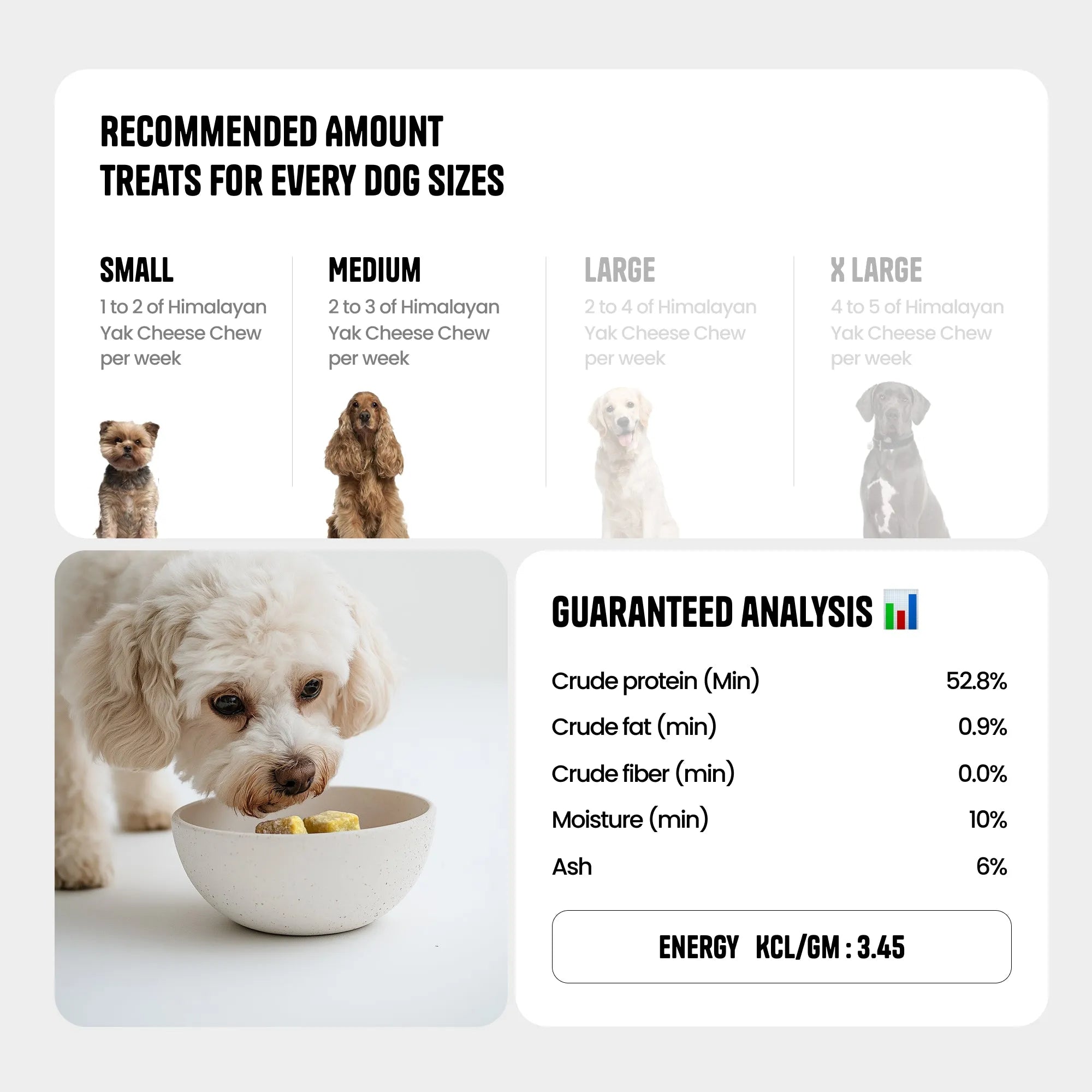 Excellent Source of High-Quality Protein, Calcium, and Phosphorus: Himalayan gourmet cheesy chews have yak milk as a major component which is an excellent source of high-quality protein, calcium, and phosphorus. These chews not only support the bone health of your dog but are also helpful in muscle growth.