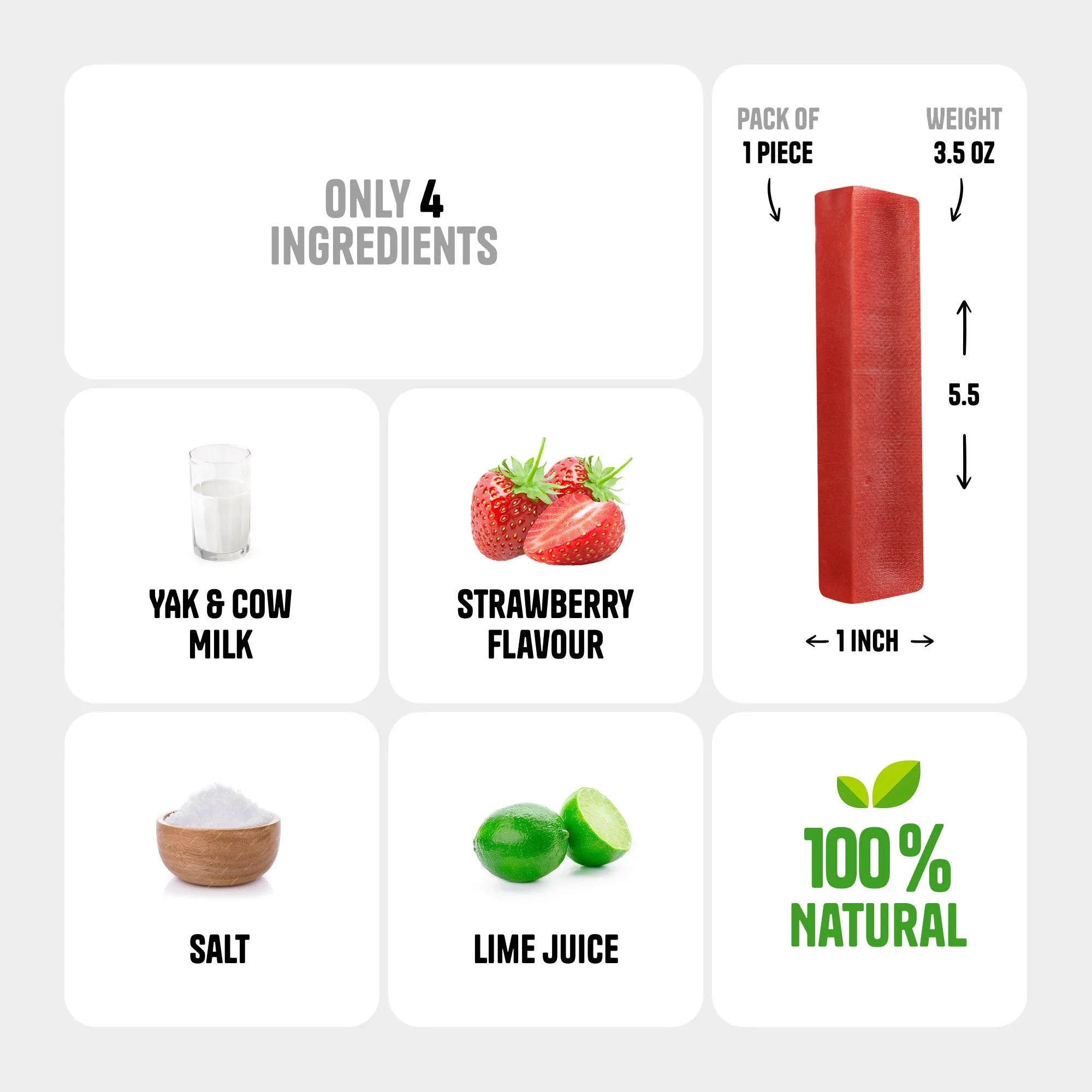 - Natural Ingredients: Made from 100% yak and cow milk, strawberry flavor, salt, and lime juice. Free from artificial preservatives, additives, or chemicals.