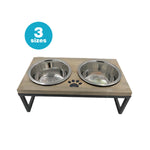 - Hygienic and Easy to Clean: The stainless steel bowls feature a smooth, non-porous surface that resists bacteria buildup, promoting a clean and healthy feeding environment. The iron and wooden components are easy to wipe clean, maintaining their modern appearance.