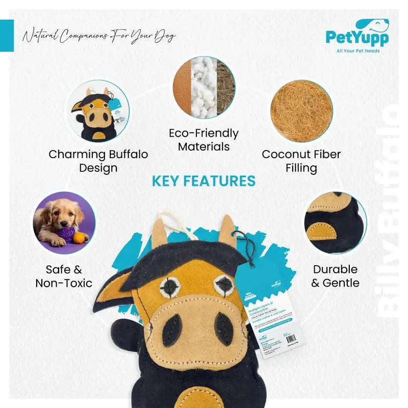 Add the Leather, Cotton & Jute Toy with Coconut Fiber Filling - Billy Buffalo to your dog’s toy lineup for a playful, durable, and eco-friendly companion that’s sure to provide hours of entertainment!