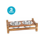 - Hygienic and Easy to Clean: The stainless steel bowls feature a smooth, non-porous surface that resists bacteria buildup, promoting a clean and healthy feeding environment. The wooden frame can be easily wiped clean to maintain its rustic appearance.