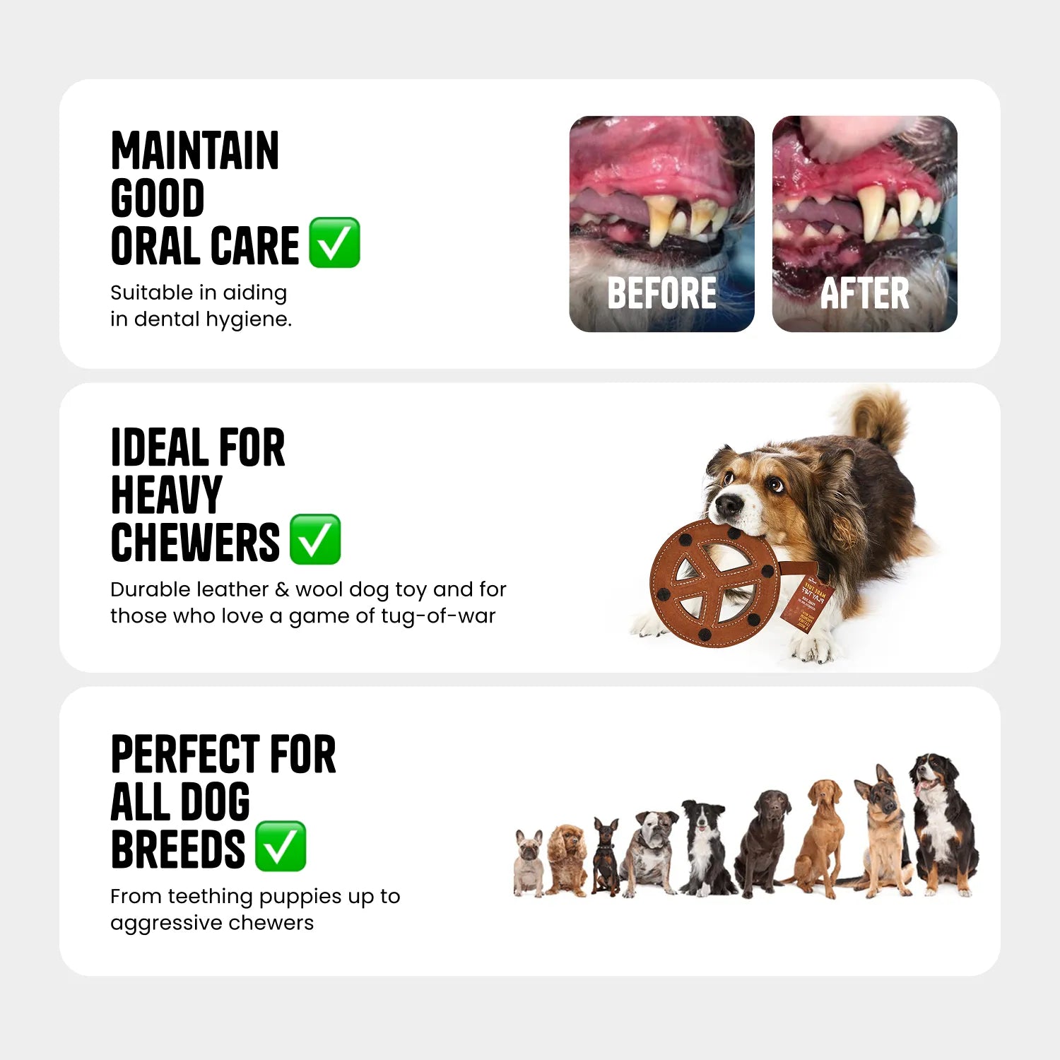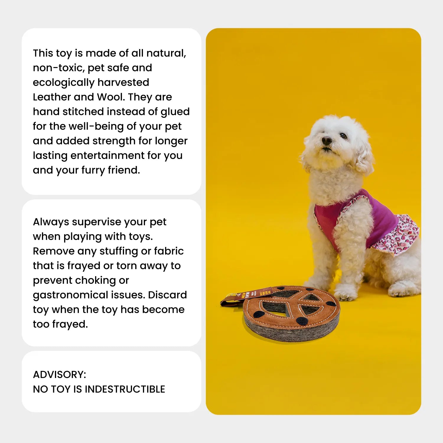 Highly Engaging for Dogs of All Sizes: This peace sign leather tuff toy made of leather and wool is highly engaging and entertaining for dogs. Such toys are important when you leave your dog alone for urgent work. This toy is designed to eradicate the stress and anxiety your dog may experience in your absence.