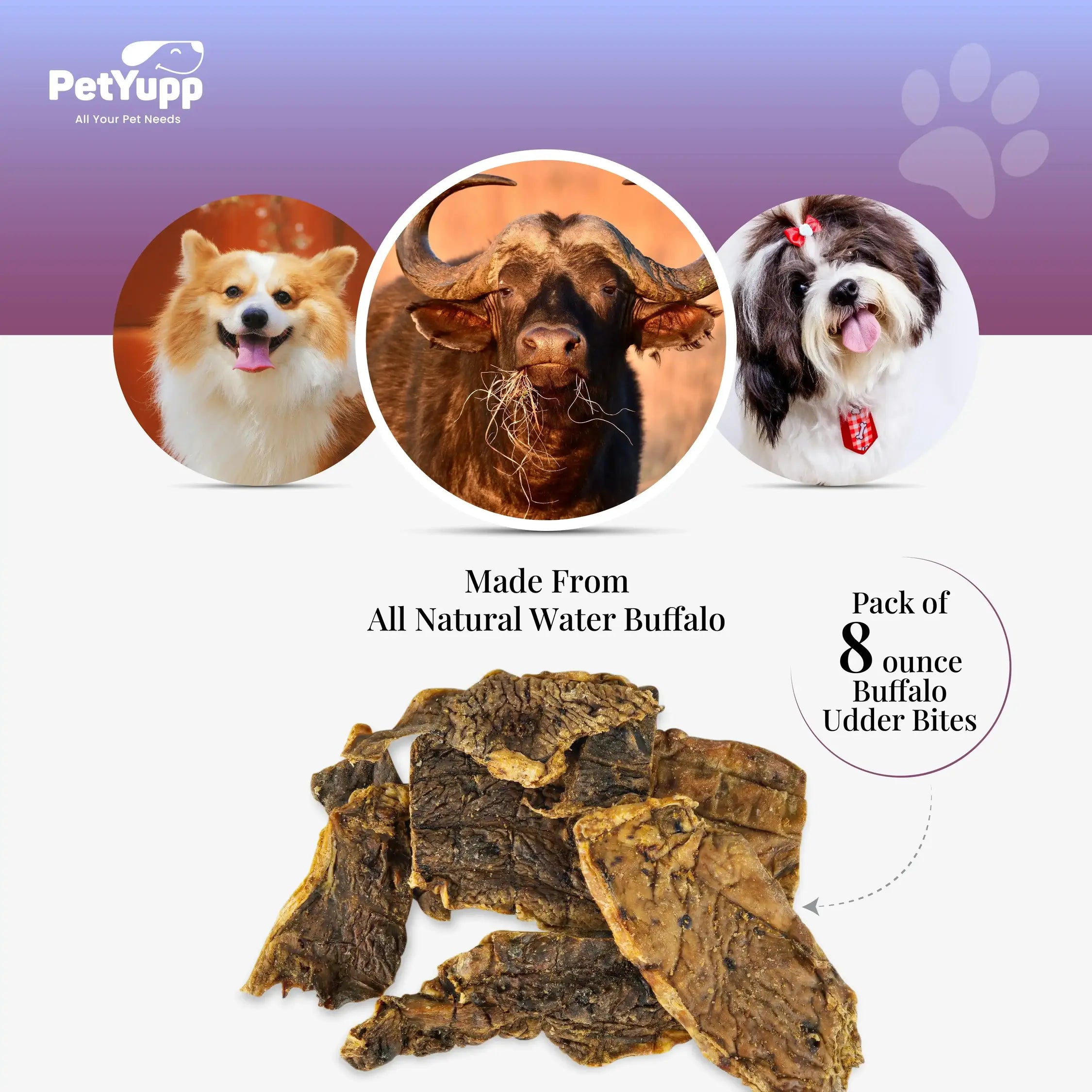 Dogs Crave the Natural Flavor: Water buffalo udder bites are completely natural and these little packaged chunks are craved by almost every dog. There is nothing better than your dog wanting more and more of the udder bites because they are full of nutrition without any harmful preservatives. Udder bites provide the dogs with a wholesome chewing experience.