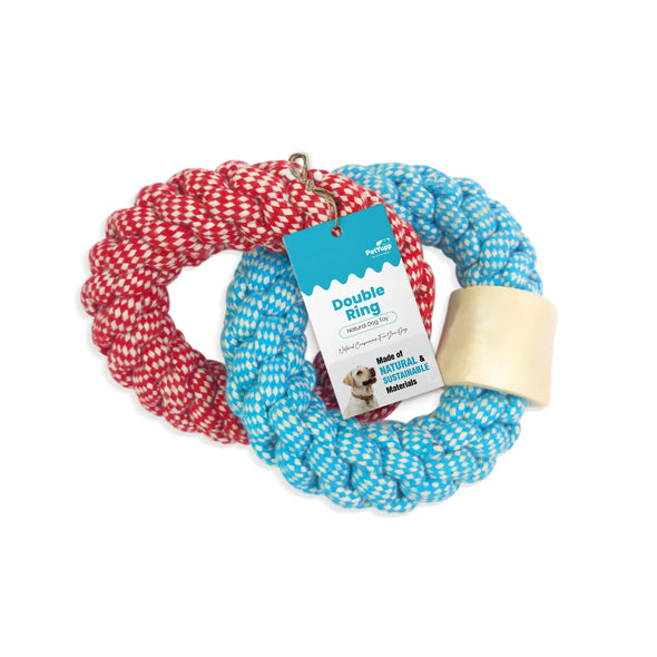 Introducing the ultimate boredom buster for your fur baby - Retrieve & Chew Dog Toy with Natural Bone! The Double Ring design is perfect for teething, playing, and fetching games. Made from natural materials with no harmful chemicals, it's also great for indoor and outdoor play and training. Keep your four-legged friend entertained and happy with our Retrieve & Chew Dog Toy with Natural Bone - Double Ring!