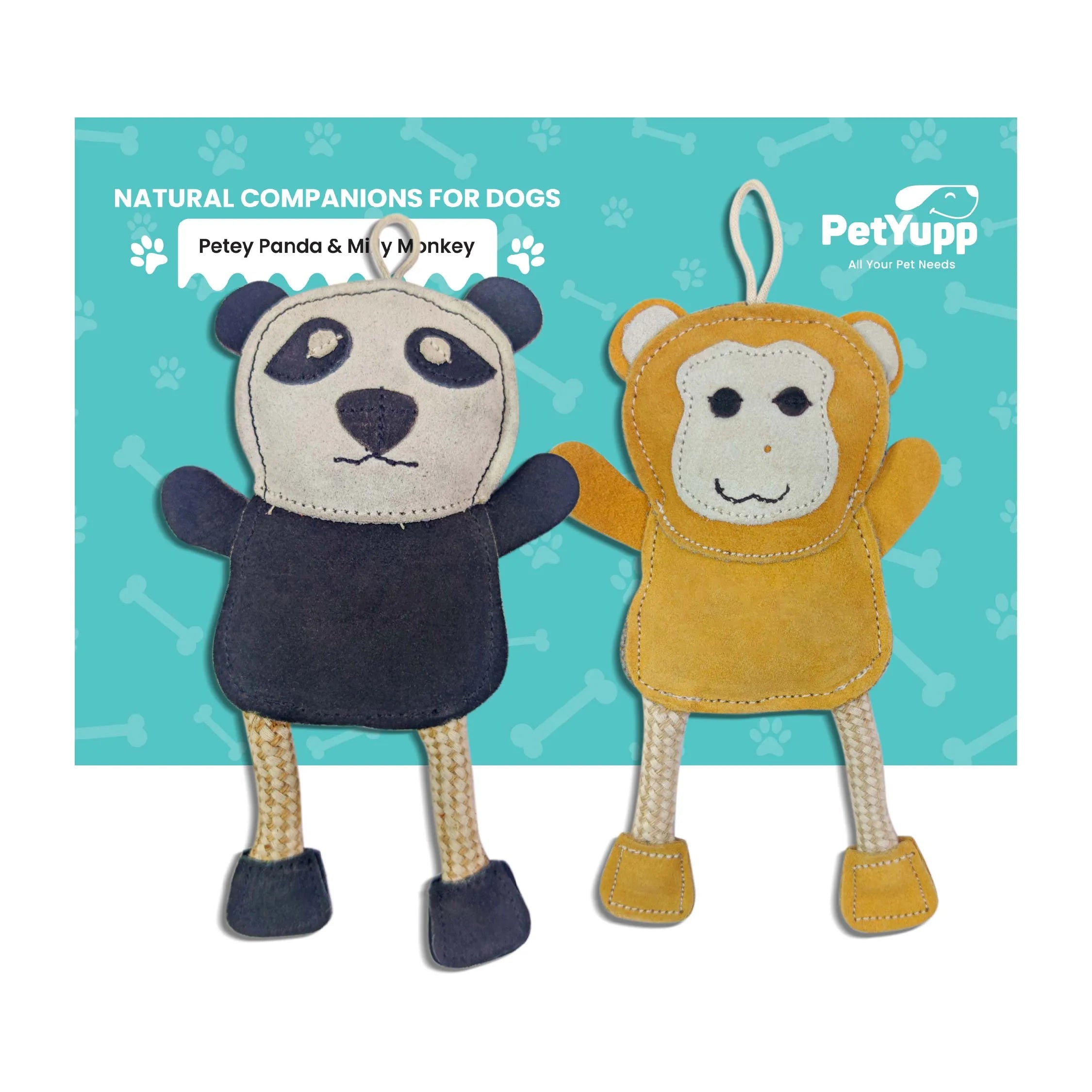 Leather, Cotton & Jute Toy with Coconut Fiber Filling - Pack of 2 (Panda & Monkey)