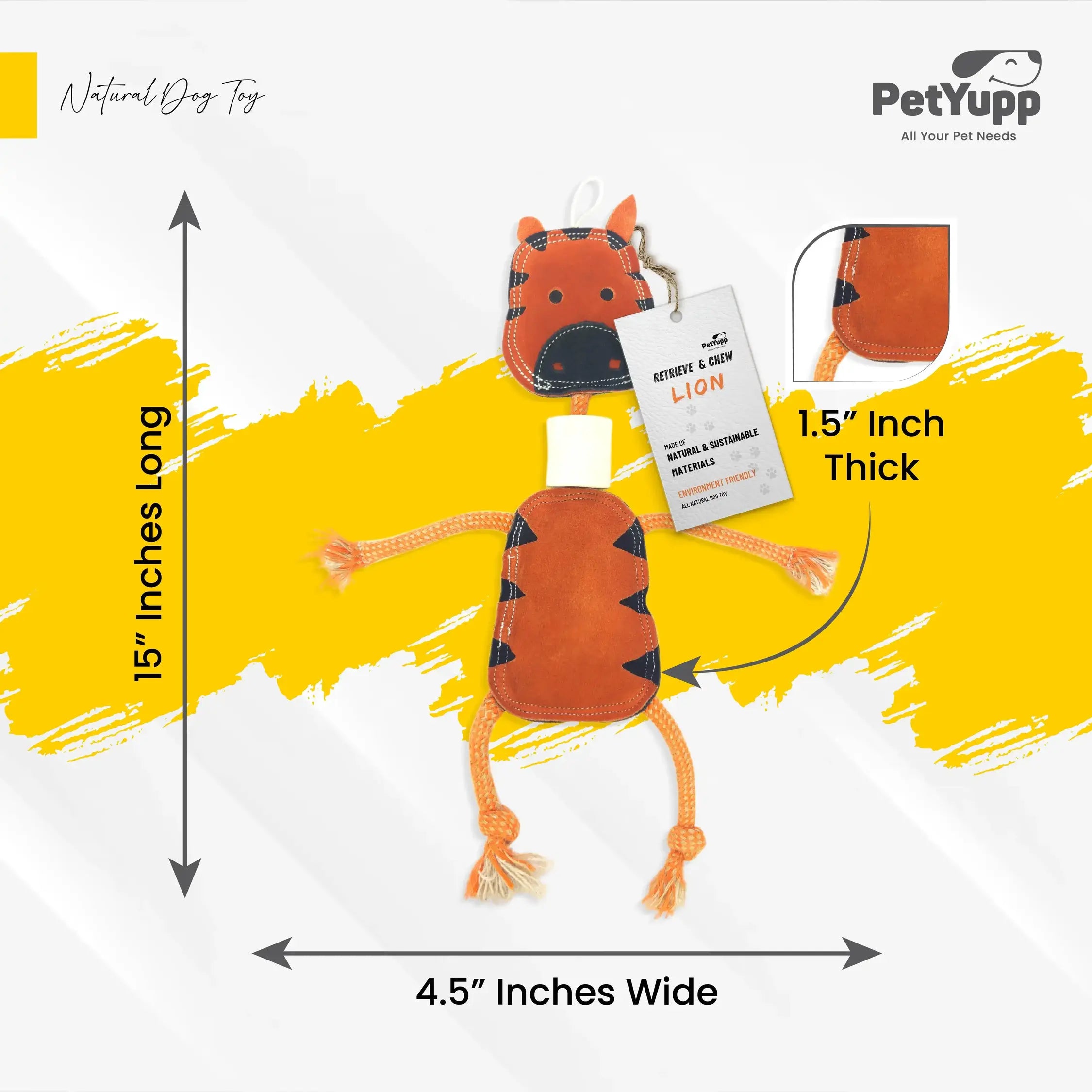 Coconut Fiber Filling: This retrieve-and-chew lion toy with natural bone has a natural filling of coconut fiber which is non-toxic for dogs. This toy is made from 100% natural filling.