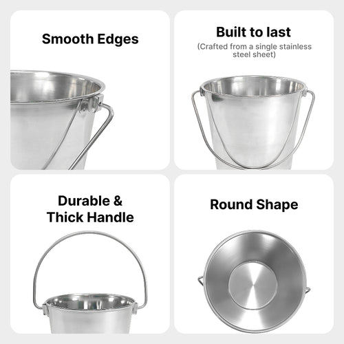 Round Heavy Duty Stainless Steel Bucket - 6 Quart - Pack of 6
