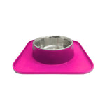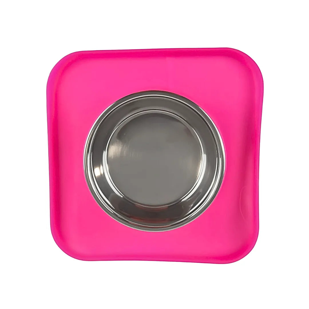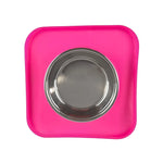 Silicone Square Non Skid Mat with Stainless Steel Bowl - Large - Pink