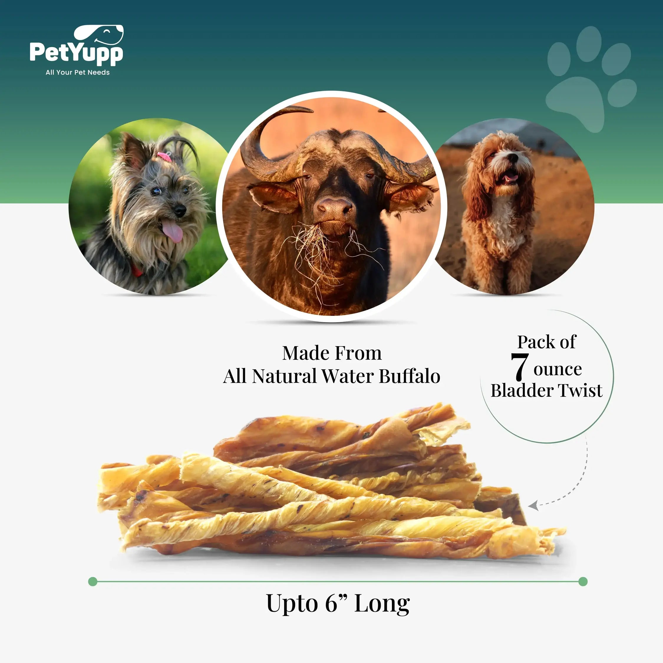 100% Natural Water Buffalo Bladder Twist Dog Treats - Pack of 7oz