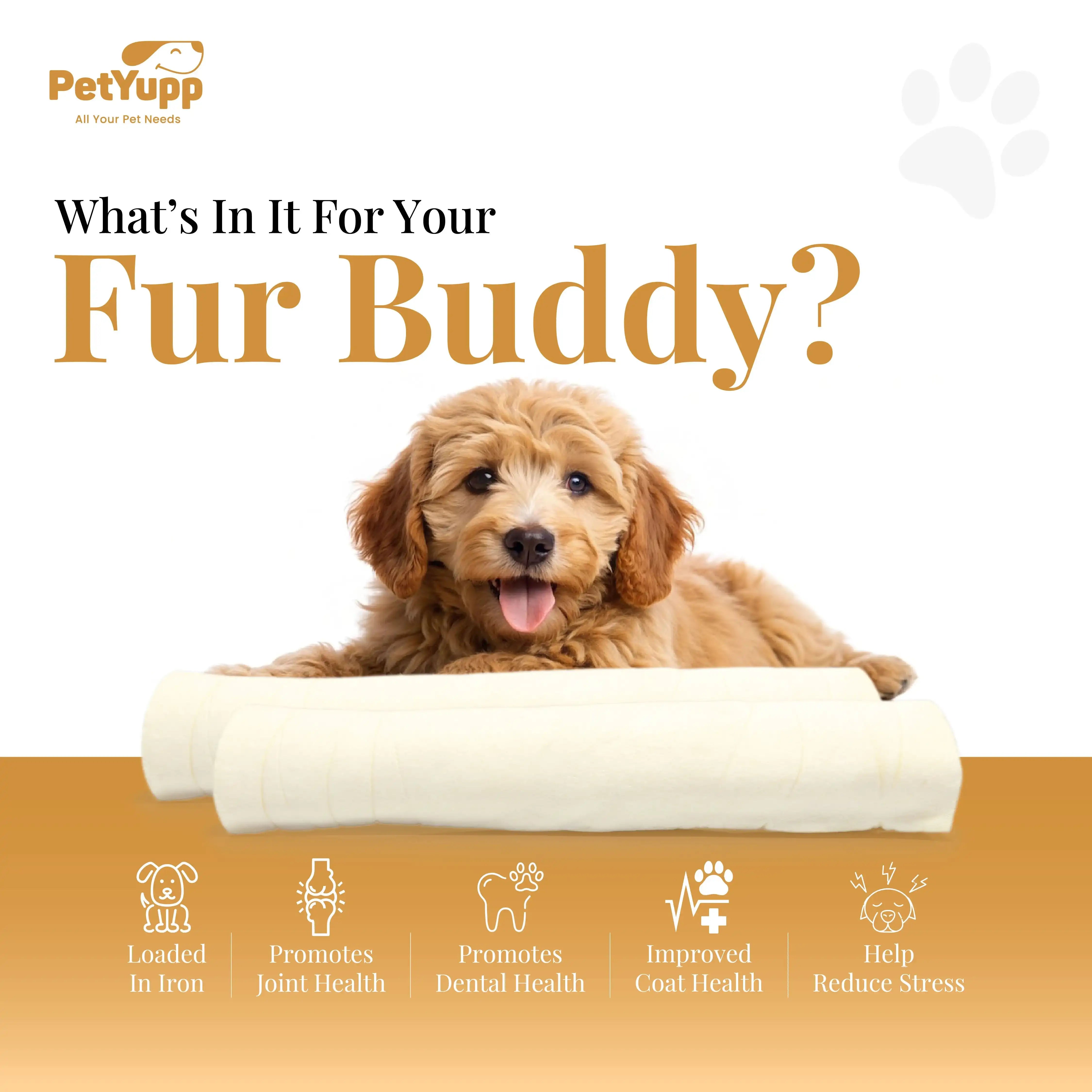 Rich in protein: Many nutrients like protein and amino acids are essential for the growth of your furry friend. Nutrition is important for the overall vitality and health of your dog’s body. Water buffalo cheek rolls provide protein and essential amino acids to your furry friend so that it may remain healthy and active.