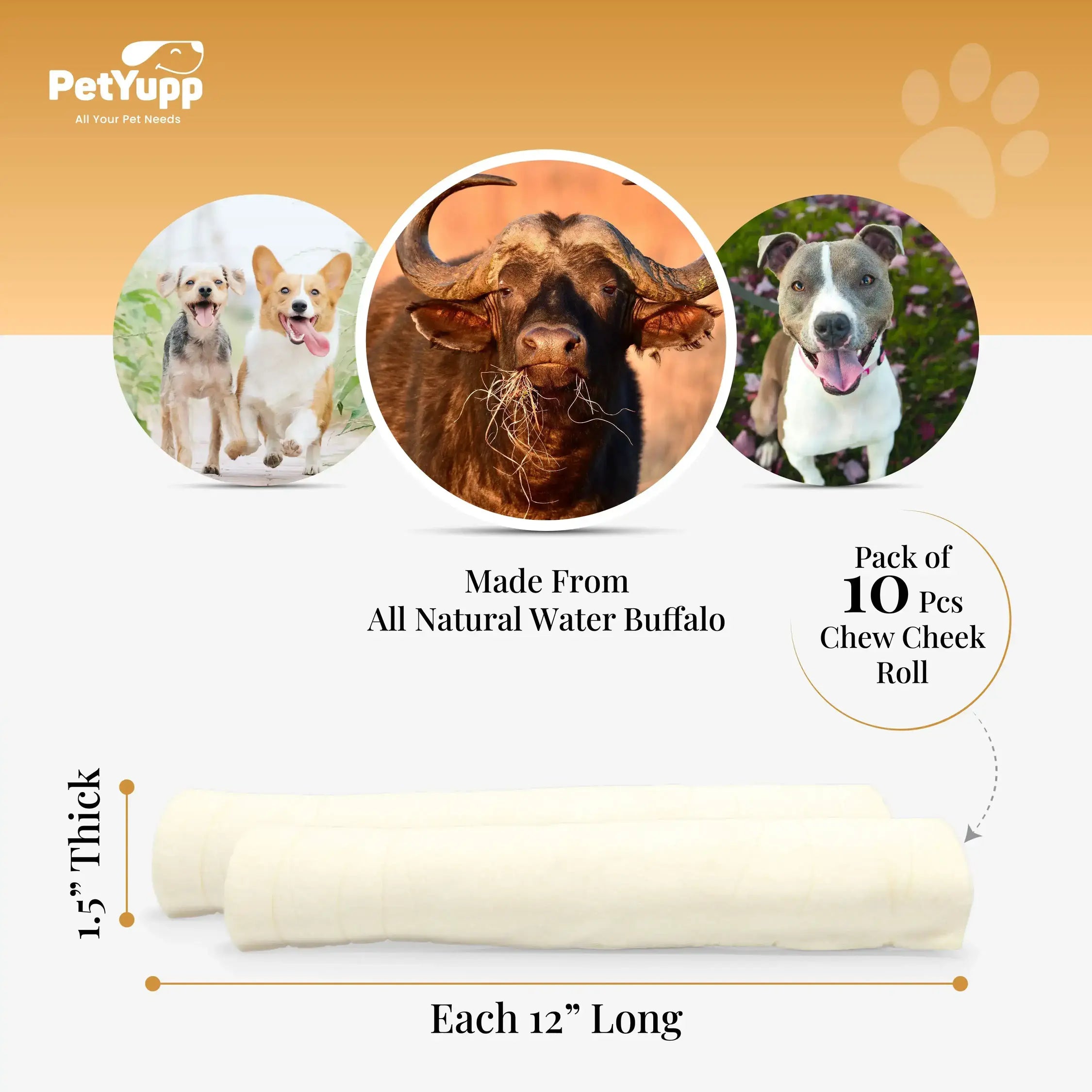 Water buffalo cheek roll is 100% natural and rich in protein. Some dogs experience more separation anxiety than others but worry not! Water buffalo cheek rolls can engage your furry friend for hours and can be a great stress buster. Even though water buffalo cheek rolls are good for dental health as well as physical health, pet lovers are still concerned about artificial elements like preservatives and taste enhancers. 100% natural water buffalo cheek roll has no added preservatives. Water buffalo cheek rolls are available in different sizes within a reasonable price range.
