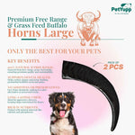 - Suitable for All Breeds & Sizes: Whether you have a teething puppy, an energetic medium-sized dog, or a large aggressive chewer, these buffalo horns are designed to cater to every dog's needs. Long-lasting and all-natural, they satisfy chewing instincts while keeping your pup entertained.