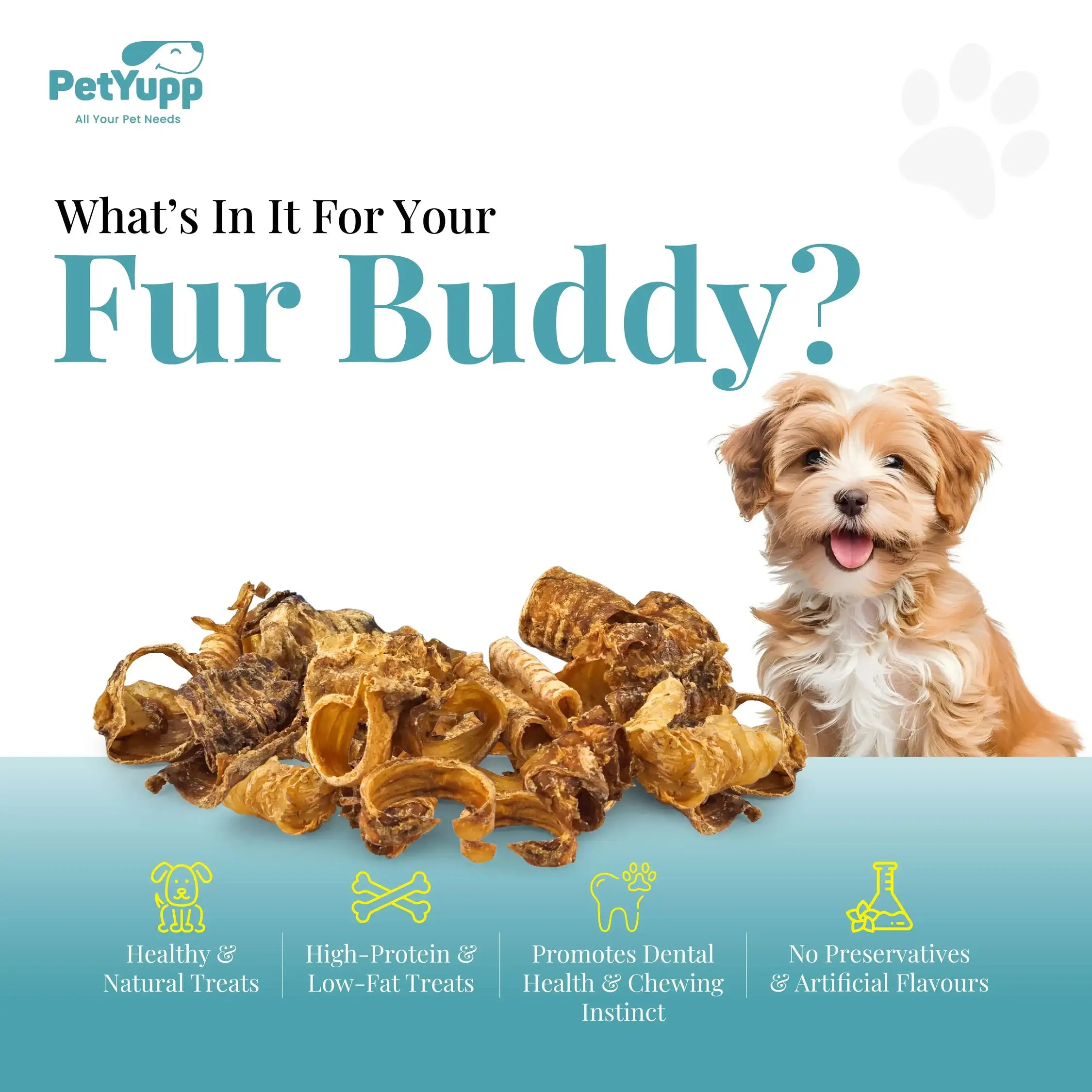 - Chews are the Way for a Shinier Fur Coat: If you are worried about the skin and fur health of your dog then you should try water buffalo trachea dog chews. Packed with omega-3 fatty acids, water buffalo trachea chews are the way to a shinier, denser fur coat and good skin health.