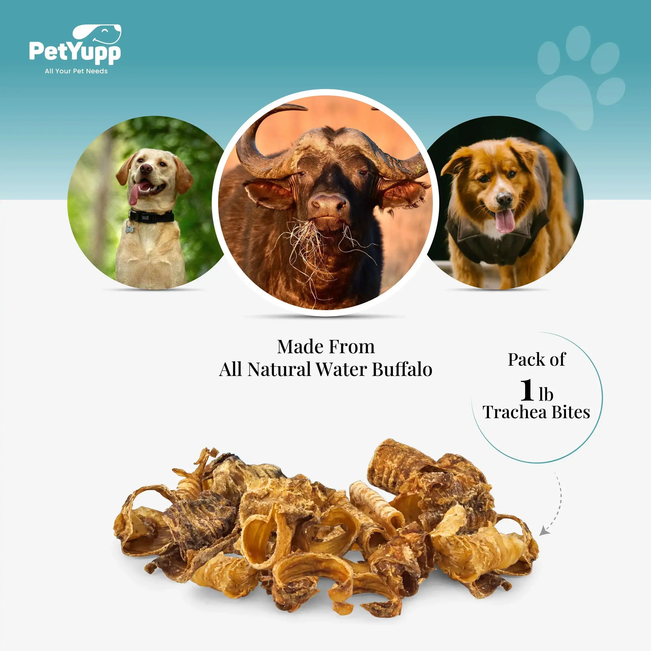 - Scrape Away Tartar and Plaque from Your Dog’s Teeth: Plaque and tartar buildup can cause serious damage to the teeth of your dog. The crunchy texture of water buffalo trachea bites can help to scrape away tartar and plaque. Dogs have a natural urge for chewing, if they get their paws on tasty water buffalo trachea bites then they can chew them for hours and get rid of impurities from their mouth.